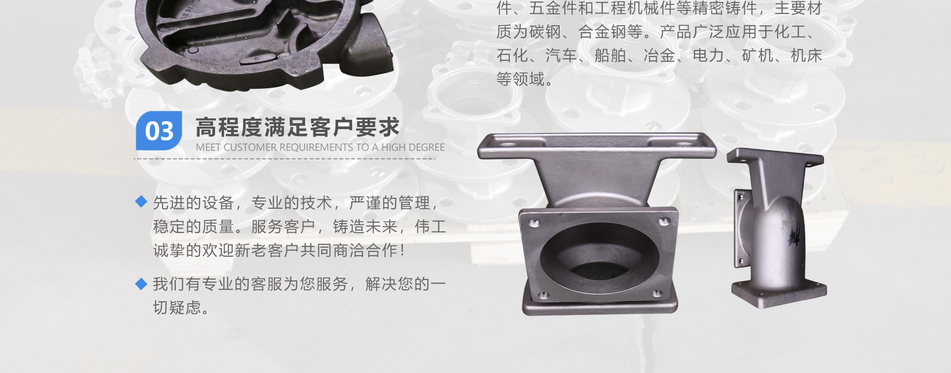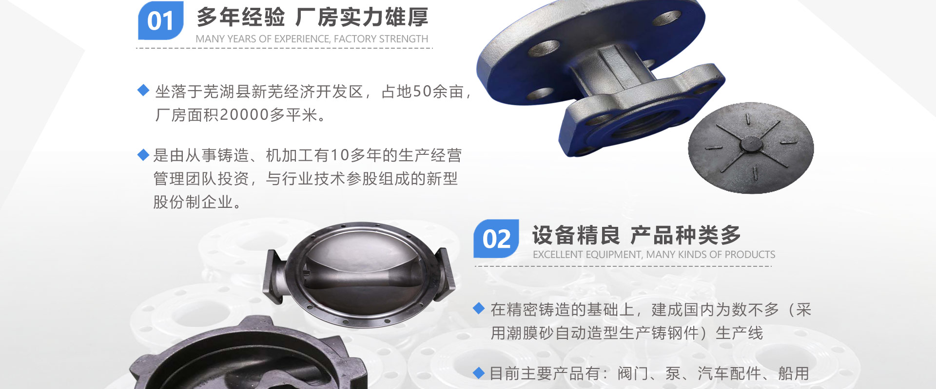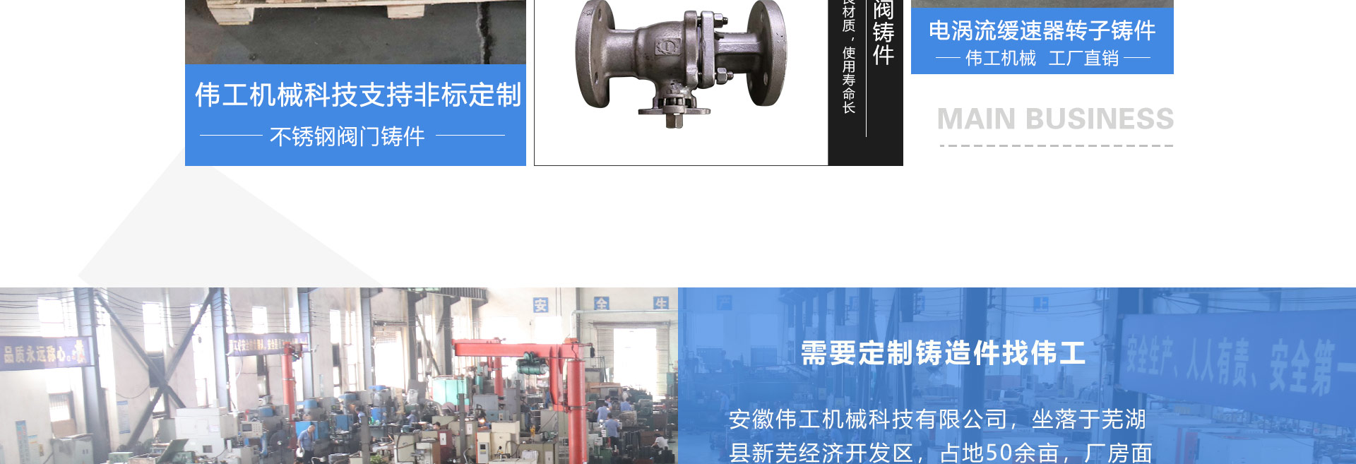 安徽偉工機械科技有限公司,坐落于安徽蕪湖新蕪經(jīng)濟開發(fā)區(qū),是一家専業(yè)從事鑄造產(chǎn)品設計、研發(fā)、生產(chǎn)、銷售于一體的企業(yè),公司為客戶的產(chǎn)品提供多樣的技術支持與設計,公司主要鑄造技術有潮模砂鑄造、硅溶膠精鑄工藝。主要產(chǎn)品有:不銹鋼閥門配件、泵閥配件、汽車配件、工業(yè)管道配件、工程機械配件、汽車配件等。材質(zhì)為:低合金鋼、304、316、316L、鉻鉬鋼、哈氏合金、碳鋼、雙相鋼等。公司已先后通過ISO9001和TS16949等多種體系審核,以完備的管理手段和齊全的檢測設備滿足客戶需求,進的設備,専業(yè)的技術,嚴謹?shù)墓芾恚€(wěn)定的質(zhì)量。服務客戶,鑄造未來,偉工誠摯的歡迎新老客戶共同商洽合作